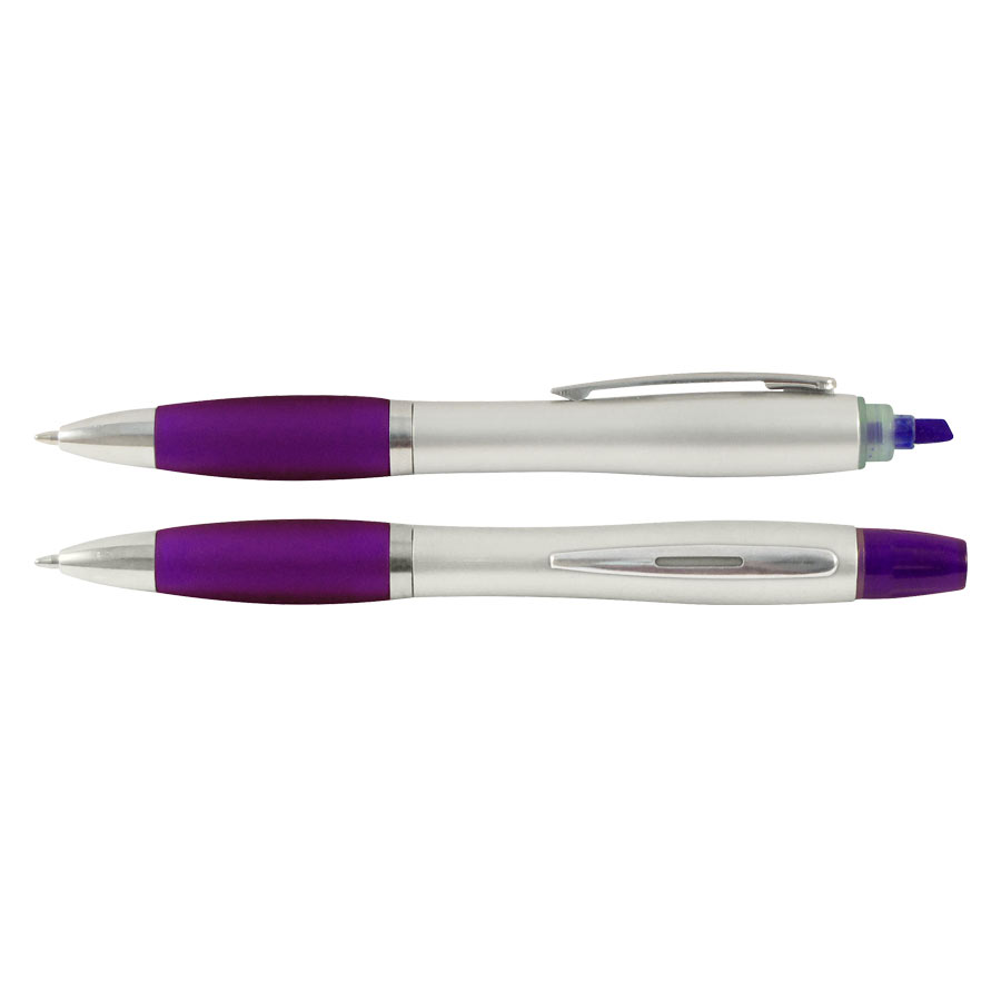 Bolígrafo Promocional «Wind Satin» con Destacador. Escritura Azul.