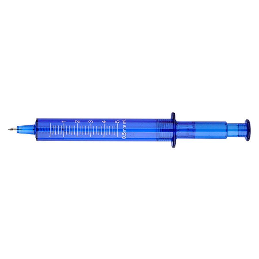 Bolígrafo plástico promocional «Jeringa». Escritura Azul.
