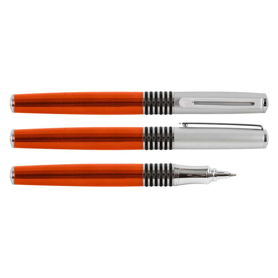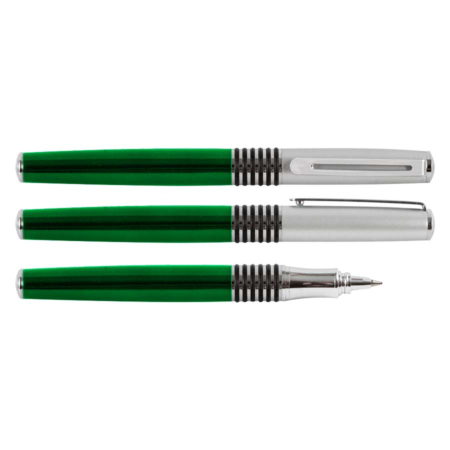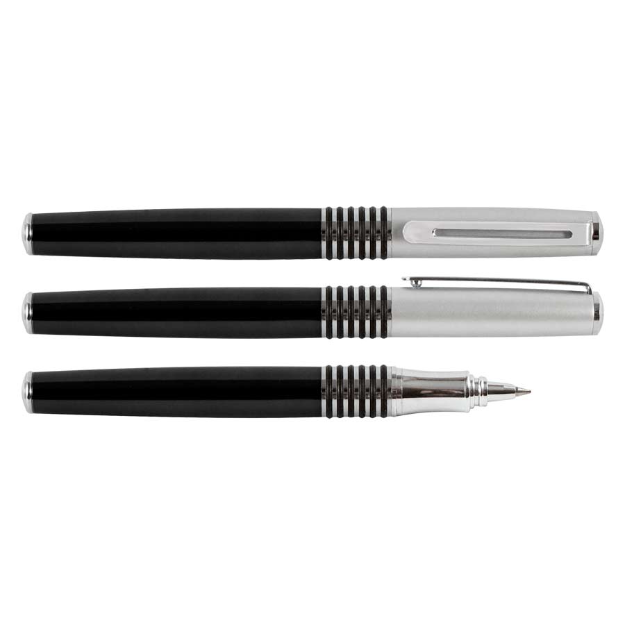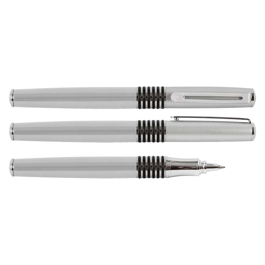 Roller Ball Metálico modelo «Manager», cuerpo de color metalizado y tapa plateada satin. Tinta negra.