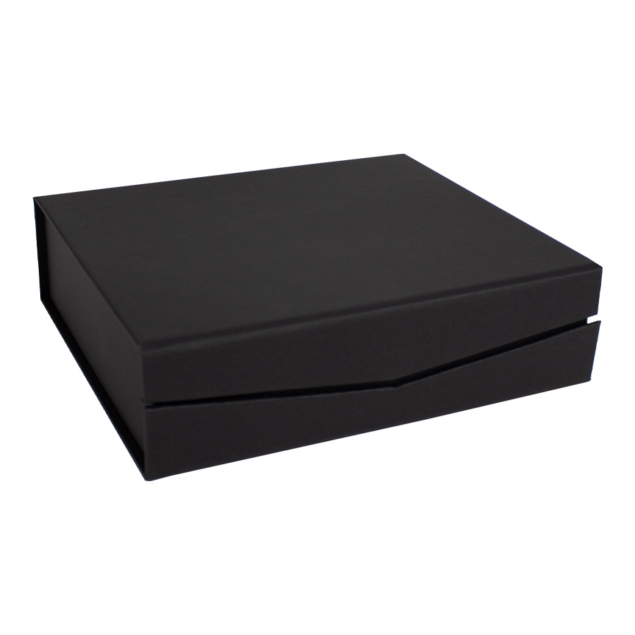 •Presentación: Caja de cartón forrado negro con cierre imantado, interior acolchado de espuma y tela poliéster satinado negro, con troquel.